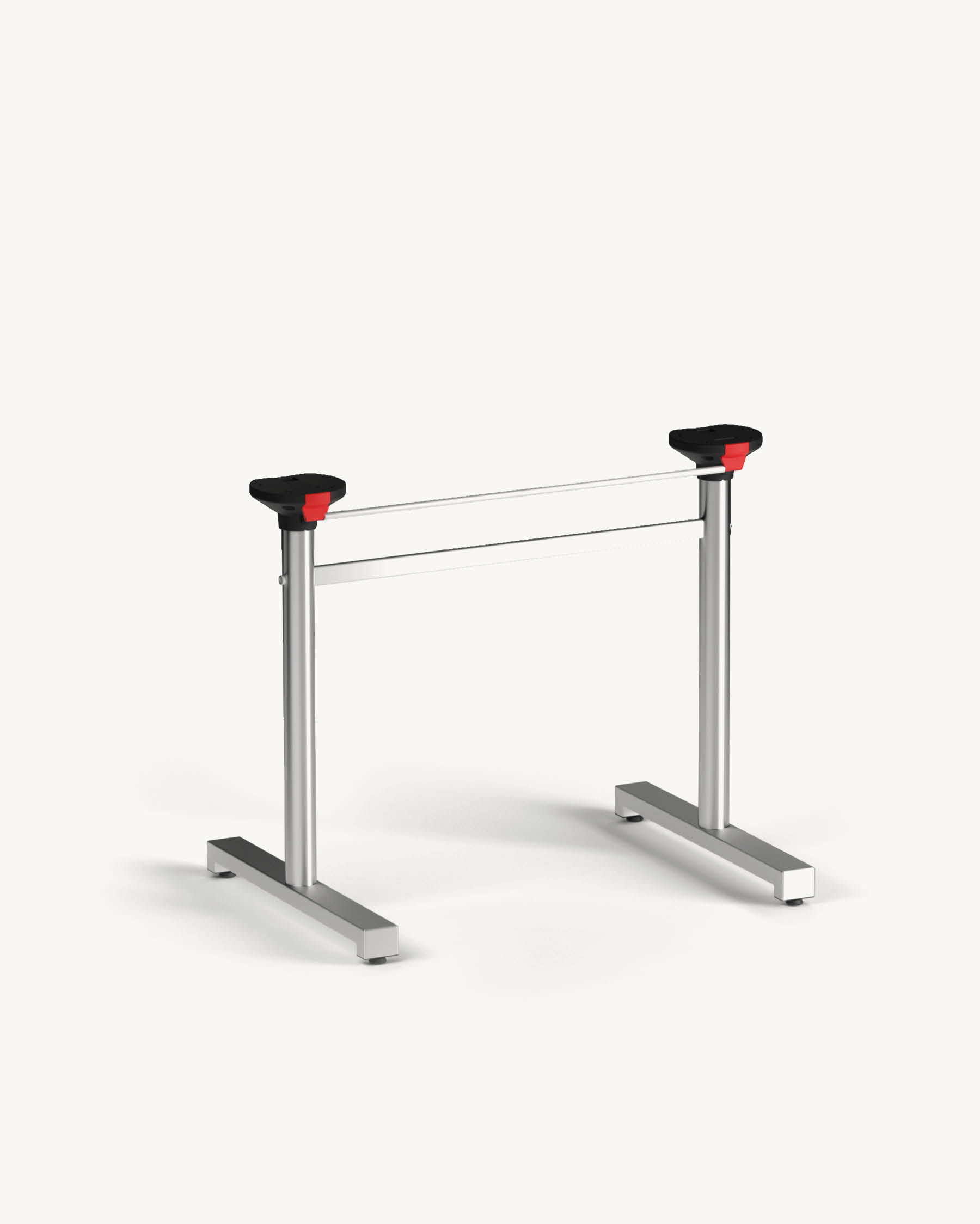Strutture di elementi tubolari in acciaio predisposte con meccanismo ribaltabile in plastica ad alta resistenza per il ribaltamento dei piani. Tutte le strutture sono dotate di piedini regolabili. I tavoli che adottano questo sistema di basi possono essere sovrapposti, pallettizzati e impilati.